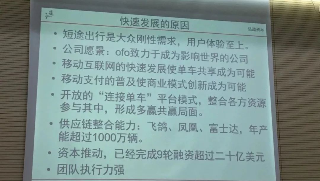 李晓光最著名的案例是投资了ofo小黄车。李晓光说当年他在北大念书的时候,校学生会主席是现任总理,而戴威也曾经是校学生会主席,所以李晓光认为戴威以后或许是个人物,所以就投资了他们团队。