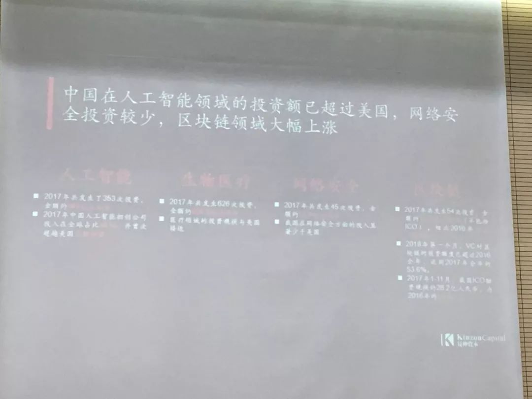 随后,昆仲资本创始管理合伙人王钧分析了中国过去一年投资热点:共享经济、娃娃机、自动驾驶、教育、新零售、无人零售、人脸识别、区块链。这两个月,创业项目的BP纷纷从区块链改成了芯片,投资热点转换有点快。