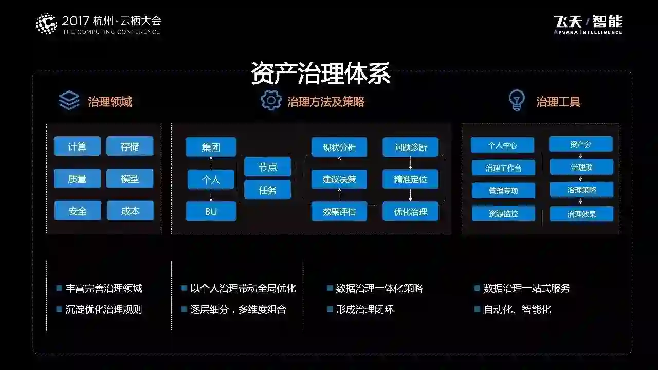 对于降本来说,大量数据资产消耗的核心部分是计算和存储的成本,就需要在这一块下功夫;对于提效来说,打通闭环:实现从数据分析到现状分析、问题诊断、优化、处理管理优化,一直到效果反馈,构建这样的闭环则是核心。