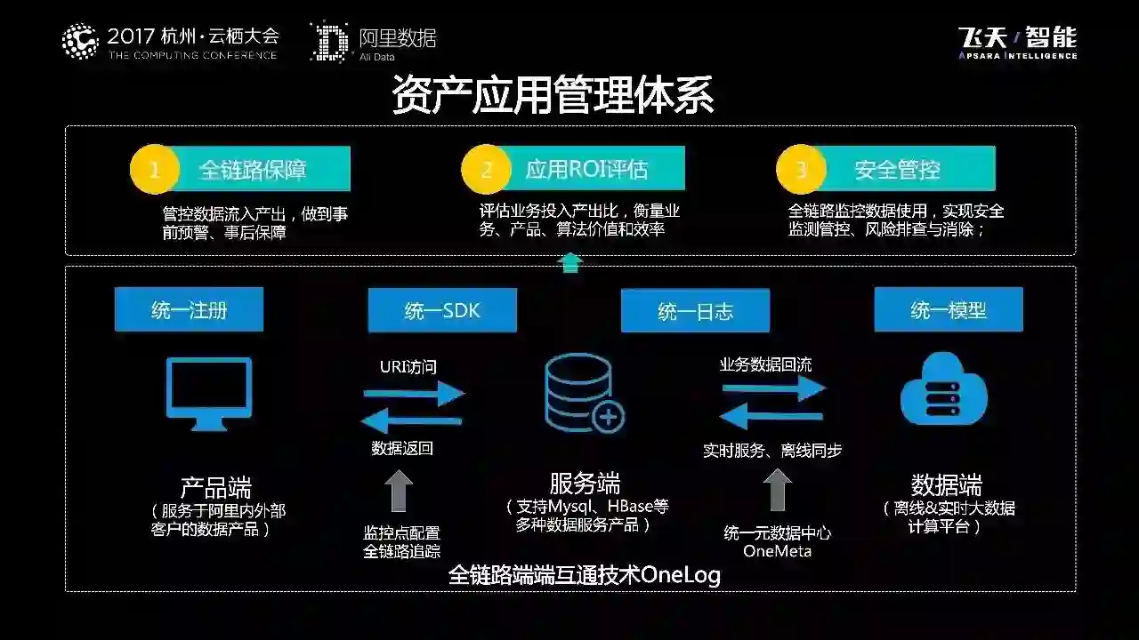 对产品端来说,它服务于整个阿里体系内外客户;对于服务端来讲,我们大量的数据采取不同的异构数据存储,服务不同的产品;对于数据端来说,除了有ODPS还有其他的数据加工引擎、计算引擎。只有真正把链路打通才能实现从数据采集端到生产端到服务端全链路打通。