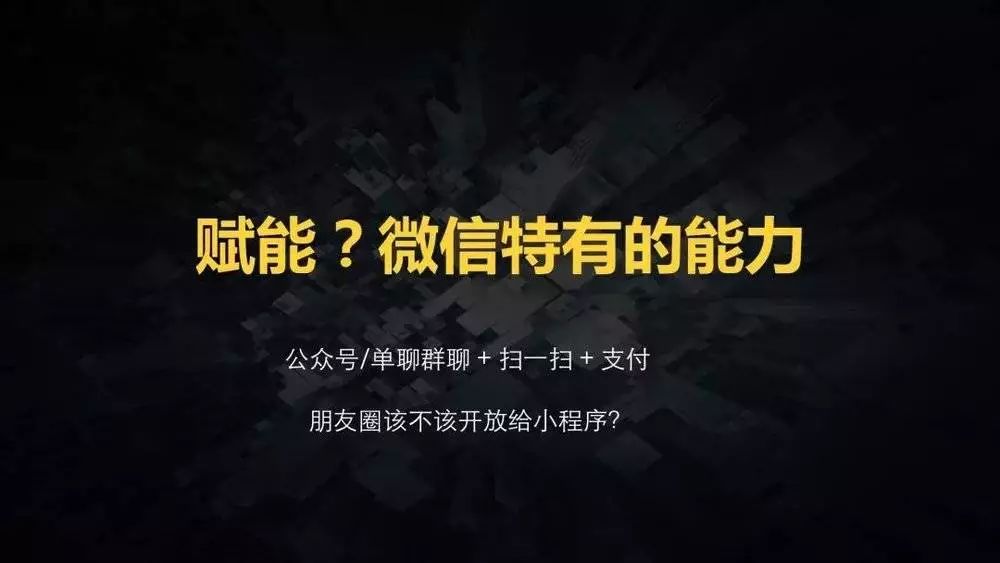 说到这里有一个问题,我不知道大家有没有想过:小程序不允许分享到朋友圈,既然要赋能,为什么不把朋友圈赋给我们呢?