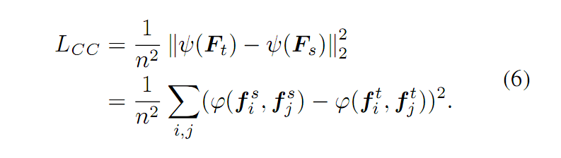 其中,距离度量的方法可以有很多种。基于公式(5),我们可以得到 CCloss。如公式(6)所示: