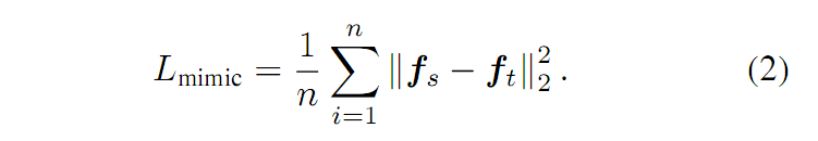 我们用 Ft 和 Fs 来分别表示老师学生网络的特征表示的集合。可以用公式表示如下: