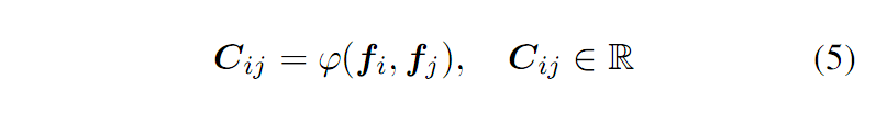 定义 C 为相关性矩阵,其中每一个元素表示 xi 和 yi 的关系,因此可以表示为公式(5):