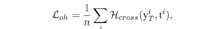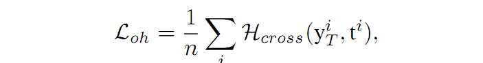 X={X1,X2,,,Xn} 的图像来说,D 的输出为 {y1,y2,,,yn},根据输出得到的预测的 label 为 {t1,t2,,,tn},Loh 则可以表示为输出和预测值之间的交叉熵损失: