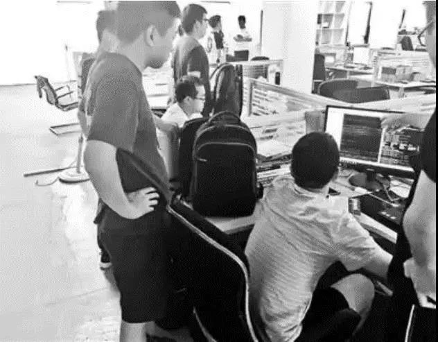 2018年7月3日,浙江绍兴越城警方在北京海淀区瑞智华胜公司抓捕犯罪嫌疑人,技术人员进行现场取证。(图片来源:北京青年报)