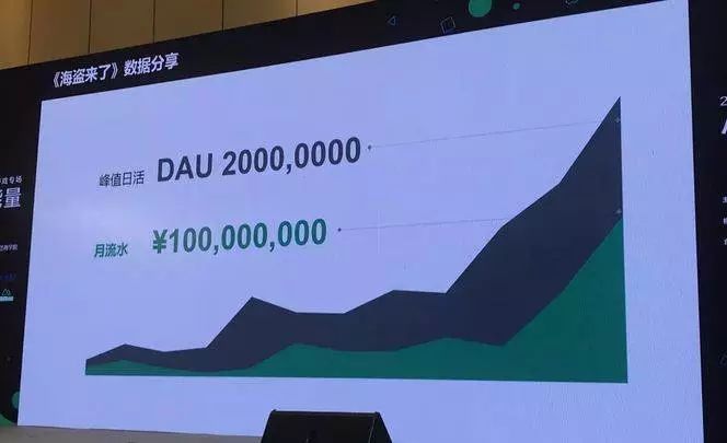在这次的分享会上,出现了一款名为《海盗来了》的明星产品。该产品在现场公开了月流水数据,有1亿之多,很快成游戏圈的热点。我朋友圈也被刷了一轮,一片欣欣向荣的气象。