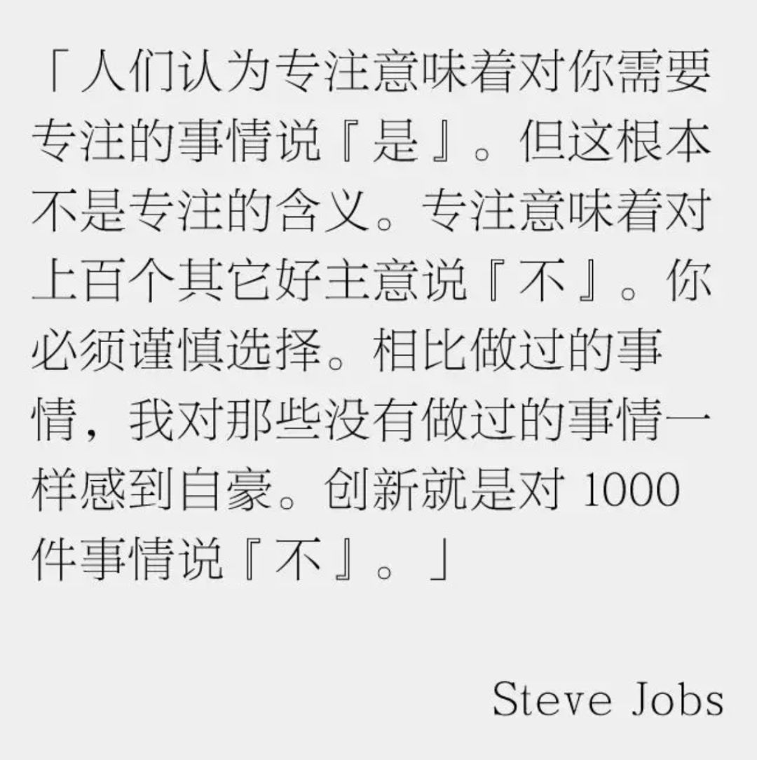 Steve Jobs 有段话说的非常好,创新是对 1000 件事情说「不」: