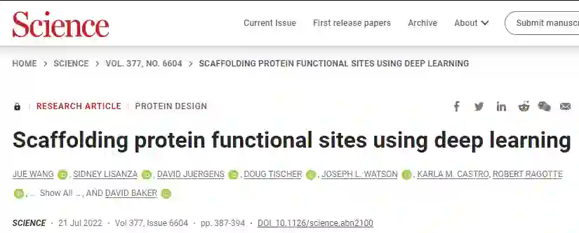 7月22日,论文以“Scaffolding protein functional sites using deep learning”为题发表在Science杂志上。