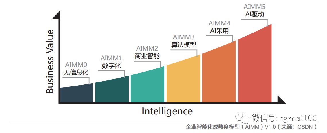 根据AIMM可以将企业按照智能化的程度划分为 0~5 级 6 个发展阶段: