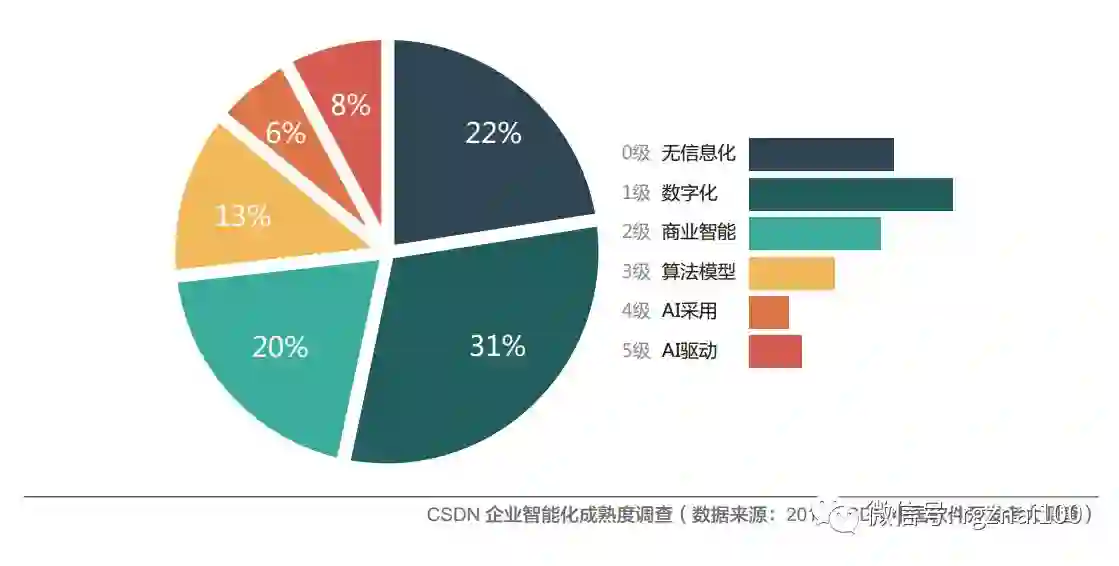 2017年 CSDN 中国软件开发者大调查显示,22%的企业还未进行信息化改造,51%的企业刚刚在核心业务中实现了核心流程标准化和数字化。