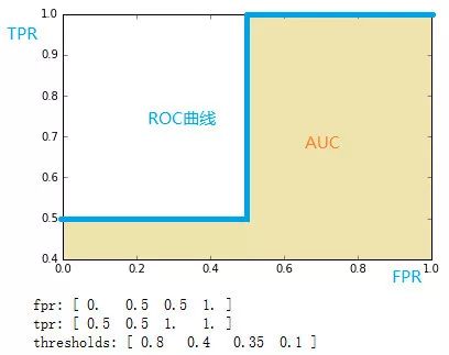 AUC(area under curve):计算从(0, 0)到(1, 1)之间整个ROC曲线一下的整个二维面积,用于衡量二分类问题其机器学习算法性能的泛化能力。其另一种解读方式可以是模型将某个随机正类别样本排列在某个随机负类别样本之上的概率。
