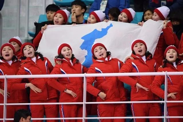 比赛期间,朝鲜啦啦队高呼“我们是一家人”,并唱起统一歌曲,即便在韩国流行音乐回荡在体育场内的时候。