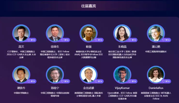 曾在往届 CCF-GAIR 提纲挈领的嘉宾包括: