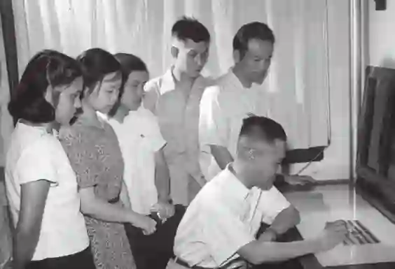 ▲ 20世纪50年代,陆学善(右一)与青年科研人员讨论学术问题