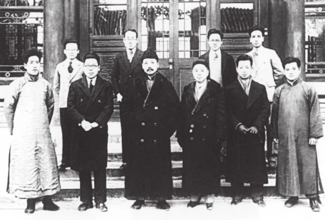▲ 1936年北平研究院的同事们。前排左起:盛耕雨、严济慈、李书华、饶毓泰、朱广才、吴学蔺;后排左起:钱临照、鲁若愚、陆学善、钟盛标