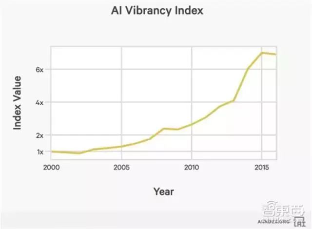▲AI活跃度指数(来自学术界和工业界数据,如出版物、注册创企和风险投资等)