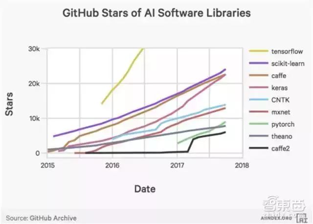 这里主要参考GitHub项目:TensorFlow和 Scikit-Learn等AI和ML(机器学习)软件包被收藏(star)的次数飙升。