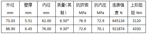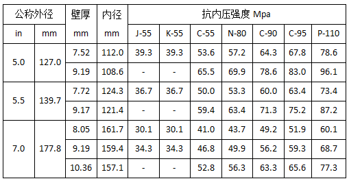 常用套管性能数据: