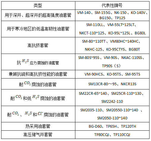 根据使用的环境和用途的不同可将油套管分为以下类型: