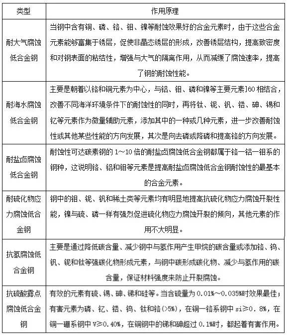 按其耐蚀性特点和使用领域可分为耐大气腐蚀低合金钢、耐海水腐蚀低合金钢、耐盐卤腐蚀低合金钢、耐硫化物应力腐蚀低合金钢、抗氢腐蚀低合金钢和抗硫酸露点腐蚀低合金钢。