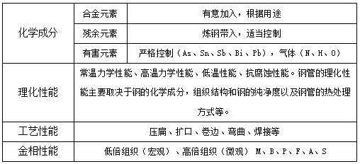 氧含量≤15ppm,硫含量≤50ppm,磷含量≤50ppm;材料疏松和偏析<0.5级;屈服强度≥310MPa,抗拉强度≥690MPa;外径公差±0.1mm,壁厚公差(+10%,-5%)。