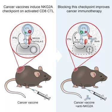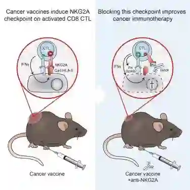基于小鼠肿瘤模型,科学家们发现,单独使用monalizumab抑制NKG2A的治疗效果较差。但是,将monalizumab与旨在刺激抗肿瘤免疫应答的癌症疫苗相结合,可以减少肿瘤生长并延长无进展生存时间。
