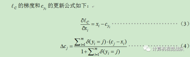 为了解决这个问题,本文做了两个必要的修改。第一,基于mini-batch更新中心,在每次迭代中,通过平均相对应类别的特征去计算中心,这样有些中心就不必更新;第二,为了避免一些贴错标签样本的扰动,使用了一个标量a去控制中心的学习率。