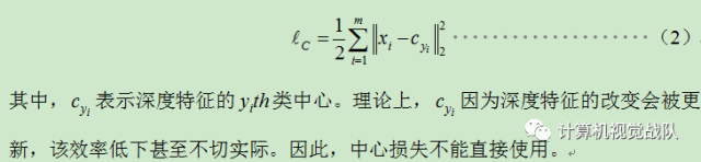 如何建立有效的损失函数提高深度学习特征的辨别力?最小化类内变化,同时保持不同类别的特征分离是关键。所以提出中心损失函数,如下: