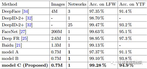 做了广泛的实验,在基准数据集LFW,YTF和MegaFace上进行实验(其中MegaFace是最大的公共领域人脸数据库,有100万人脸去识别)。