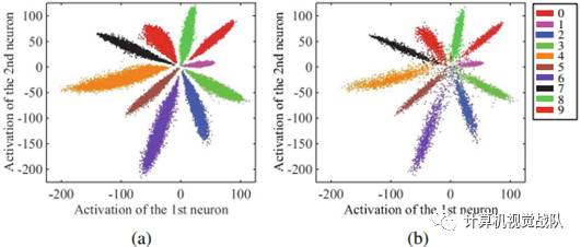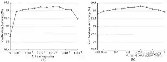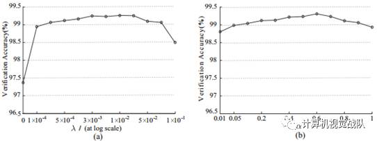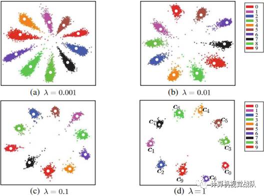 之后,还进行了实验来说明λ的影响分布。图3显示了不同的λ导致不同的深度特征分布。适当的λ,深度特征的分类能力得到显著增强。