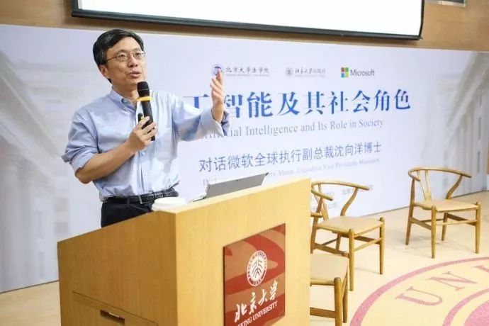 5 月 21 日, 由北京大学法学院和北京大学出版社共同举办的“人工智能及其社会角色”主题论坛在北京大学全球大学生创新创业中心大讲堂举行。微软全球执行副总裁,微软人工智能及微软研究事业部负责人沈向洋进行了主题演讲,并与北京大学法学院副教授、北京大学法律人工智能实验室/研究中心副主任江溯,北京大学计算机系主任黄铁军,以及北京大学哲学系教授何怀宏就人工智能的道德准则、商业应用和未来发展等人们所关注的热点 AI 问题展开了深入探讨,解答了学子们对人工智能未来发展普遍存在的疑惑。