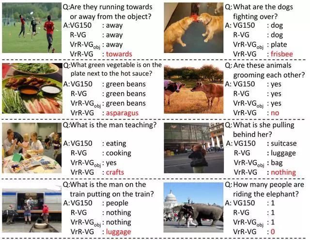 该特征也在问答系统、看图说话中展现出更好的性能,由此证明了视觉相关关系是真正需要被学习,且更有利于提升语义理解能力。