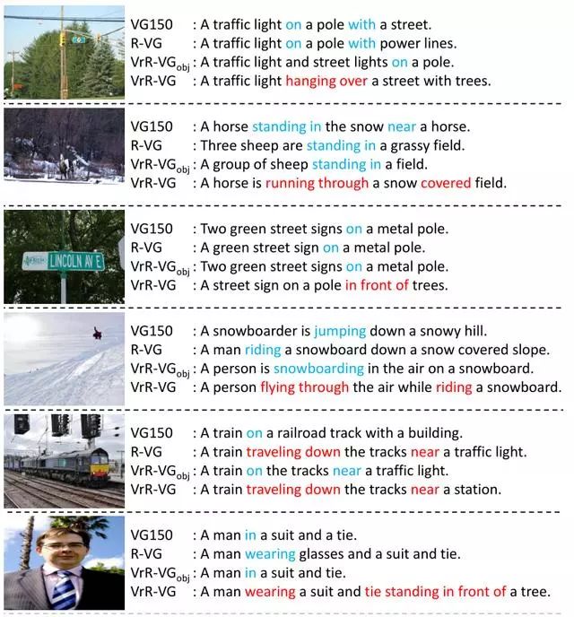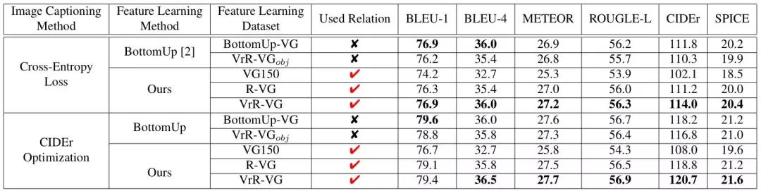 在看图说话的任务中,通过学习视觉相关关系,任务的性能也有提升。