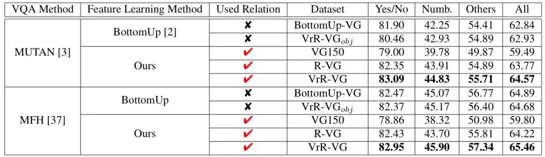 在问答系统实验中,通过学习视觉相关关系,特征具有更好的性能,在指标上有明显的提升。