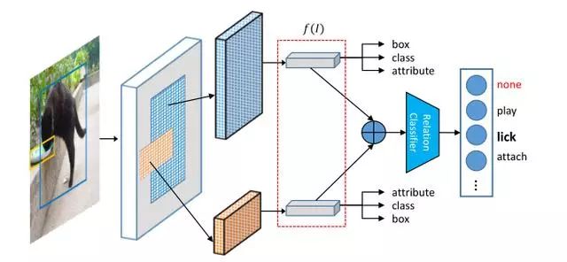 其中,我们使用Faster-RCNN用于特征提取,取自于RPN部分。网络综合的学习位置、类别、属性和关系信息。通过对象关系的信息,进一步拓展特征的语义表征能力。