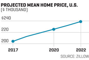 房地产行业网站Zillow请100多位经济学家和房地产专家预测明年房价,普遍的回答是会上涨,但不会有2017年这么高。