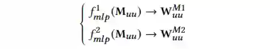 元知识提取是为了构建个性化的特征映射机制函数,从辅助域视角(user-user,item-item)到目标交互行为域视角(user-item)。简单来说,元知识提取就是针对每个参与个体,基于其个体特质信息和特定的行为模式,通过映射函数对辅助域信息与目标域特征之间的依赖关系或者影响进行隐含的量化。在用户和商品方面,元知识提取方法如下: