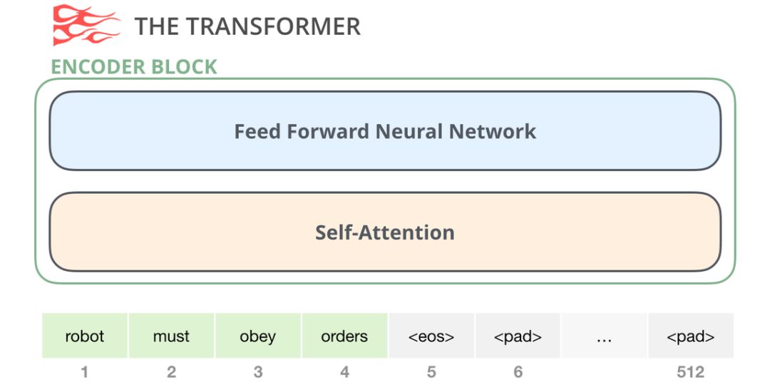 原始 transformer 论文中的编码器模块可以接受长度不超过最大序列长度(如 512 个单词)的输入。