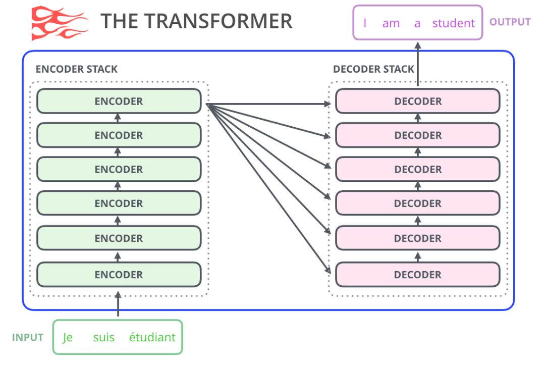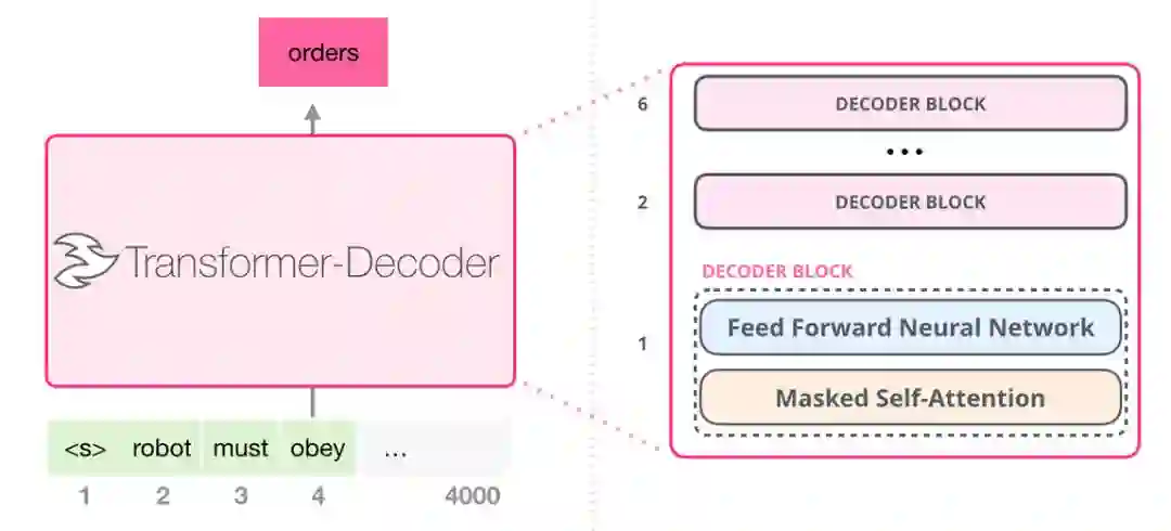 这个早期的基于 transformer 的模型由 6 个 transformer 解码器模块堆叠而成: