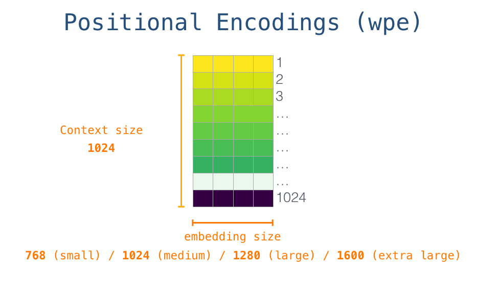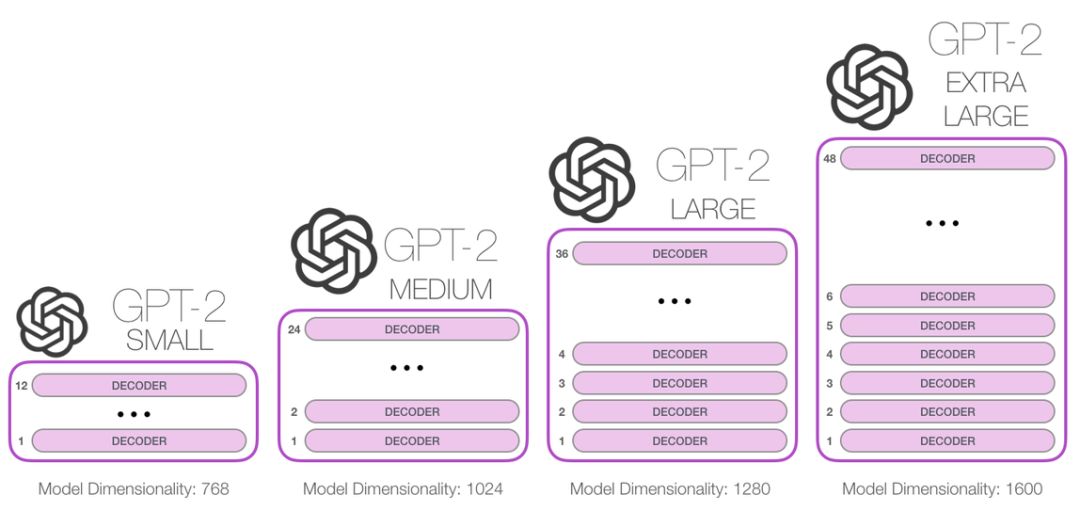 事实上,这个问题的答案也就是区别不同 GPT-2 模型的主要因素之一,如下图所示。