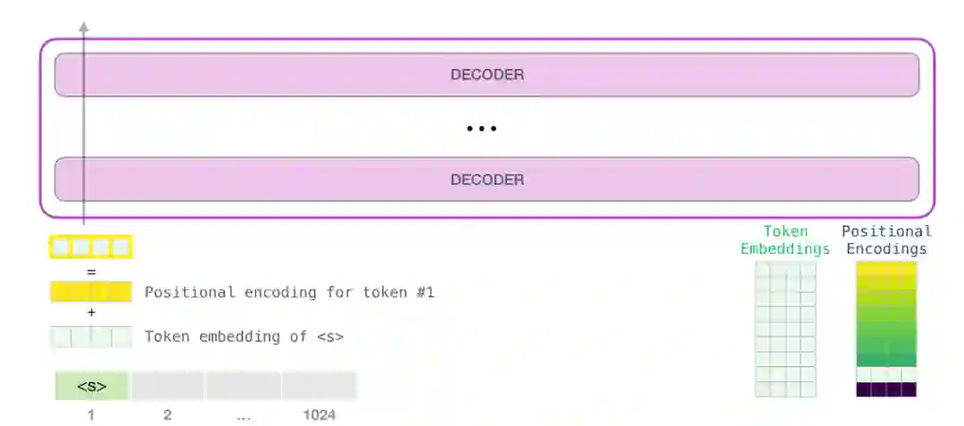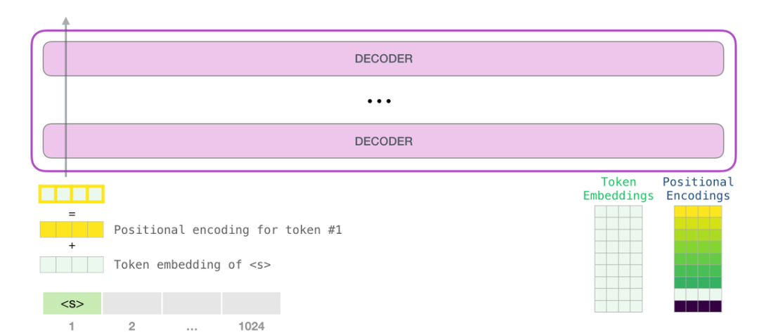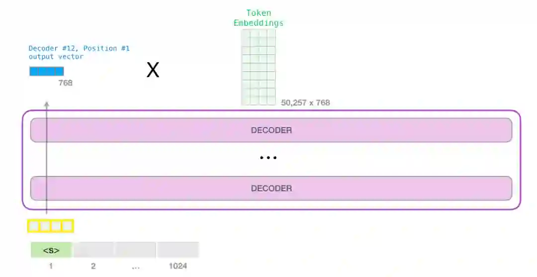 正如我们之前讨论过的其它自然语言处理模型一样,GPT-2 同样从嵌入矩阵中查找单词对应的嵌入向量,该矩阵也是模型训练结果的一部分。