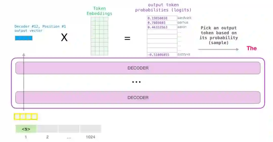 在本例中,我们选择概率最高的单词「The」作为下一个单词。