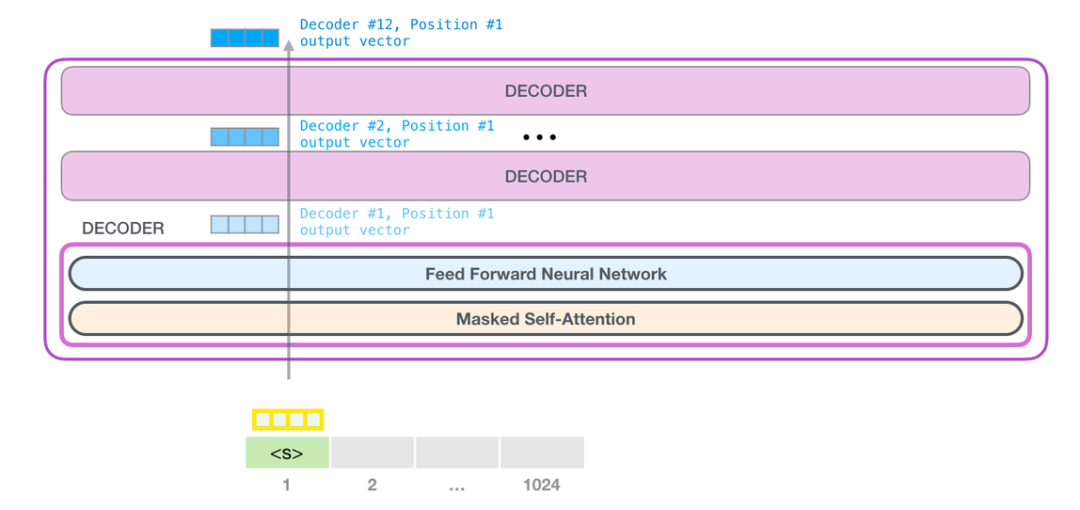 这些解码器模块和 transformer 原始论文中的解码器模块相比,除了去除了第二个自注意力层之外,并无很大不同。