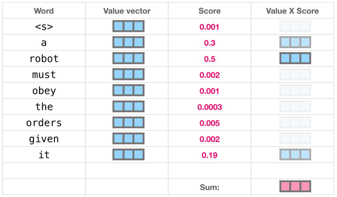 所以这个乘法操作得到的结果就是词汇表中每个单词对应的注意力得分。