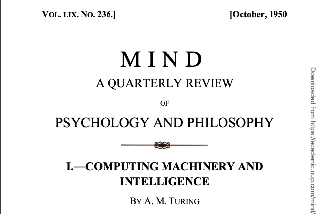 在 1949 年 10 月的哲学研讨会上,图灵、纽曼(Newman)、神经外科医生杰弗里·杰斐逊(Geoffrey Jefferson)和当时的曼彻斯特社会科学教授迈克尔·波兰尼(Michael Polanyi)就「思想和计算机」进行了讨论。第二年,图灵的论文「Computing Machinery and Intelligence」发表。