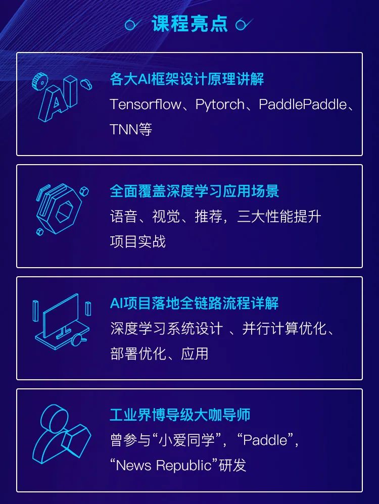 《首席AI架构师——分布式高性能深度学习实战培养计划》,力图从更宽的视角,梳理清楚深度学习框架、AI应用、部署上线的整个环节,让你在AI职业规划上可以多一些选择。
