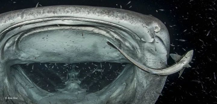 尤其是最后这张美国摄影师亚历克斯·谢尔拍摄的鲸鲨,让人耳目一新,心生敬畏。