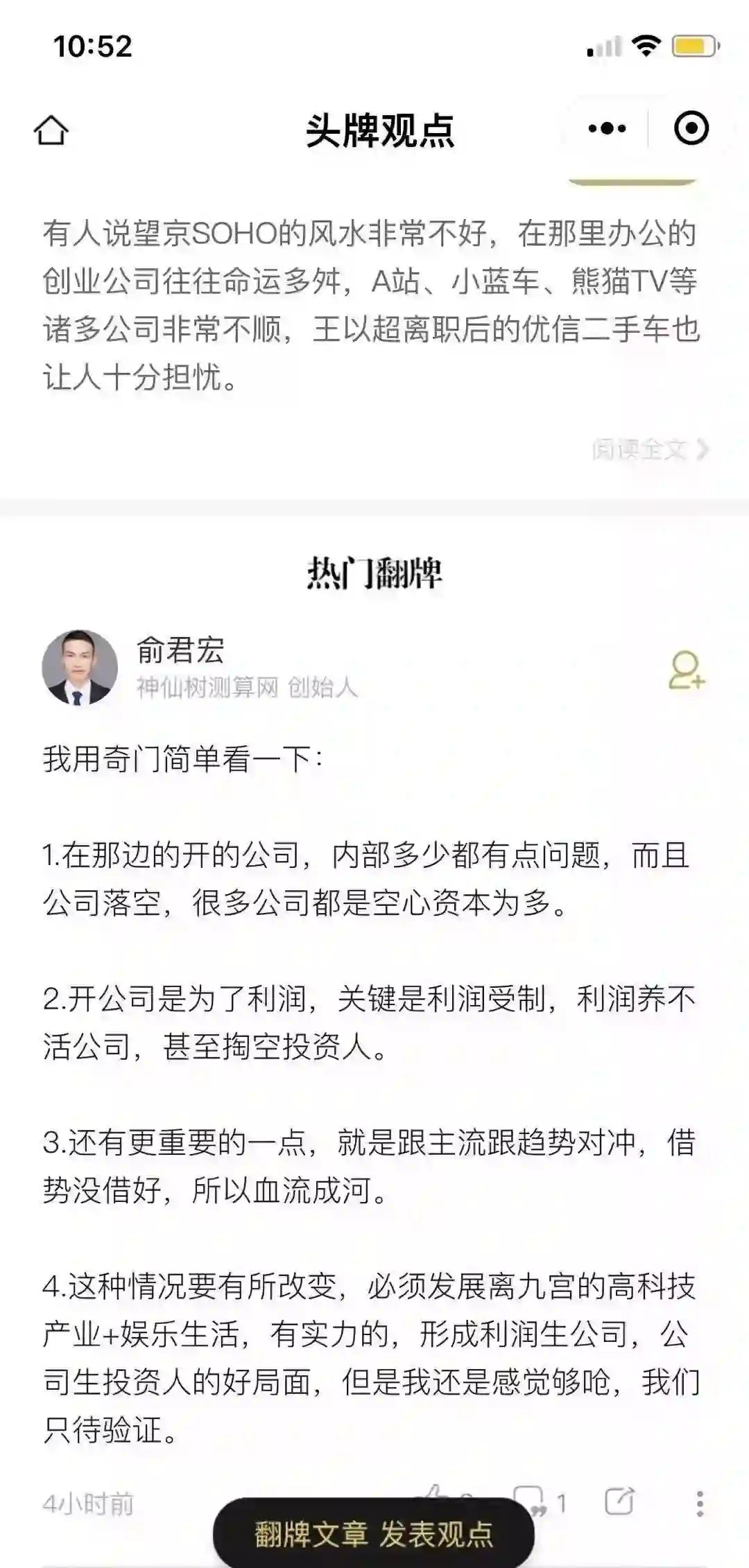 有曾在望京SOHO工作的朋友表示,“挺准的,我就看到SOHO入驻的公司确实好多黄了”。