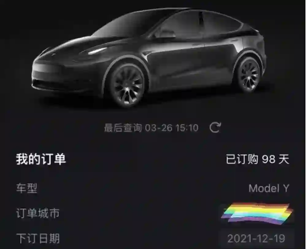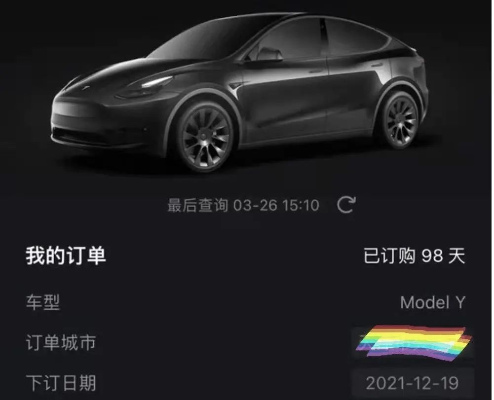 手握特斯拉订单的陈渔,切身感受到“订单升值”带来的喜悦。2021年12月,陈渔在特斯拉官网订购了一辆特斯拉Model Y标准续航版,当时的购车价为28.87万元(选购20英寸轮毂),经过三个多月的等待,陈渔下定的车型目前已经可以进行交付。